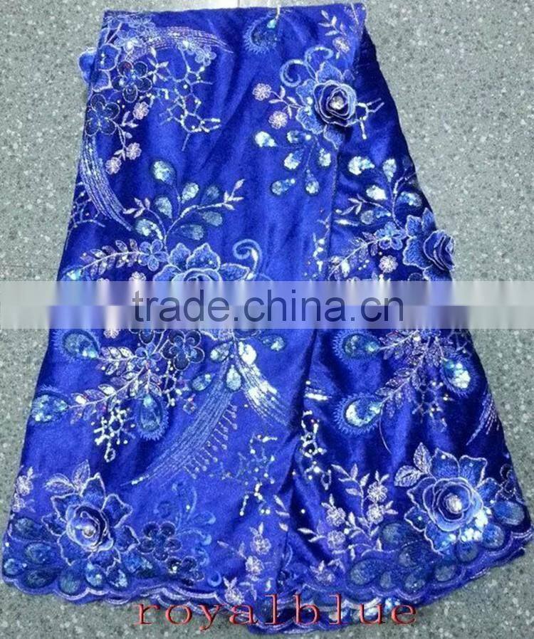 J233-3 High Quality Royalblue Color 100% Korea Velvet Fabric With Sequins for African Party