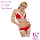 2015 Hot Seller Top Quality Velvet Sexy Ladies Red Christmas Lingerie Set Sexy Christmas Bra Sets