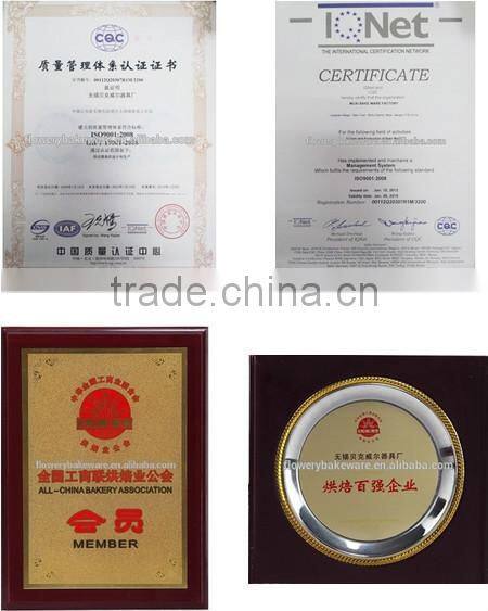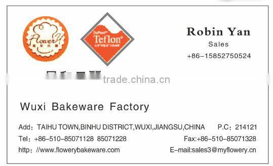 Wuxi Bakeware Factory is a leading manufacturer and the supplier of quality bakeware products. Established in March 2003, we operate a 14000 square metre workshop, excellent facilities, advanced production process and an excellent R&D team. Our factory currently produces approximately 1000 types of bakeware, constantly updating product designs and manufacture for the future. The main products of manufacture include baking trays,loaf pans,pizza pans,cake moulds,trolleys,,cake rings etc. We take great pride in our own brand "Flowery", created in the same year as our company's establishment. With excellent quality and on-time delivery, Wuxi Bakeware Factory has created an image of reputation and reliability in exportation, of which becomes a key facet of our sales. Domestic market sales of the company have already spanned the whole of China, with our international trade expanding rapidly. We also acknowledge the importance of customer confidence and encourage all employees to serve customers to the best of their capability. Ultimately we aim to pursue professional reliability in all of our excellent products and services.