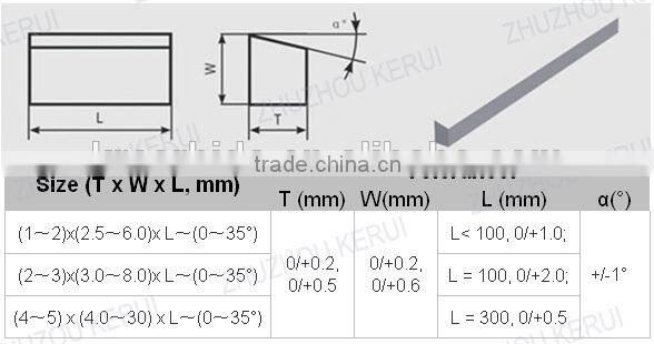1. Application: The carbide strips are mainly used to make woodworking tools, for the cutting
