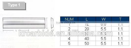 --Types for tungsten carbide planer knives