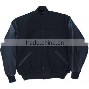 This classic black and white varsity letterman jacket features premium 100% wool,