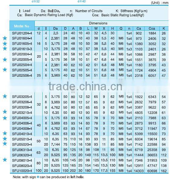 DRE High Precision Rolled Ball Screw : Balls with free motion in the ball screw assembly transfer the force and motion between screw and nut. This transfer mode replaces the traditional transfer mode that screw shaft and nut effect directly. Therefore the minimum rolling friction takes place of the sliding friction of traditional screw. The transfer efficiency of ball screw will reach more than 90%. The drive torque of transfer unit reduces to 1/3 of sliding screw.This also reduces the heat release largely. Below please find the reference number of CNC Ball Screw And Nut,and click the number to see more details and specifications.Below please find the reference number of Ball Screw, and click the number to see more details and specifications.