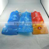 Home > Products > foldable water bottles > China Factory Custom Foldable Plastic Drinking Water Bag With Spout and Hook