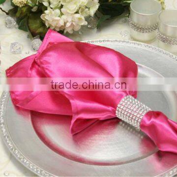 Hot Sale, Polyester Satin Napkin With Ring for Wedding, Fuchscia Color