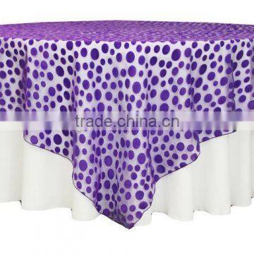 purple wholesale 90" Organza Embroidered flocking Wedding Table Overlay