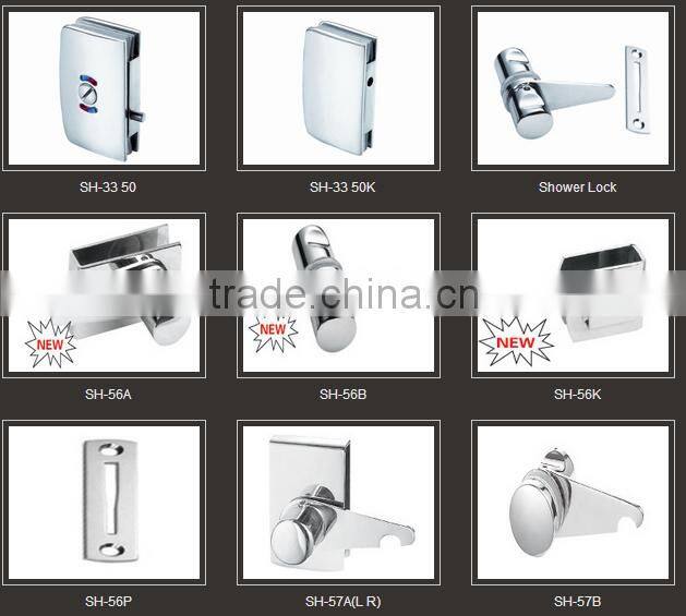 We have many glass hardware products,like glass clamp,glass lock,floor hinge,shower hinge,glass connector,shower stabilizer,door knob,sealing strip,shower lock,spider fittings,door handles,door closers,accessories and folding system,sliding system,pivoting system etc.