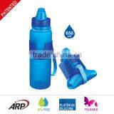 500ml Wholesale Collapsible Water Bottle Platinum Silicone LFGB Food Grade
