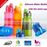 500ml / 16oz Hot Sale Foldable Silicone Water Bottle With Twist Lid,Outdoor Bottle BPA Free, Silicone Molds,LFGB Quality Choice