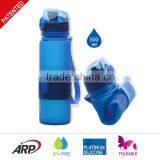 650ml Flexible, Collapsible, Portalbe Silicone Water Bottle With Customer Logo Printing BPA Free Quality Choice
