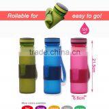 New Products 500ml/16oz Collapsible, Rollable Silicone Water Bottle With Lid, Platinum Silicone Sports Bottle BPA Free, LFGB Quality Choice