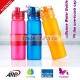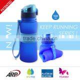 Home > Products > Water Bottle > 2016NEW 500ml/16oz Foldable Water Bottle With PP Grab, One-touch Lid, Silicone Sports Bottle BPA Free