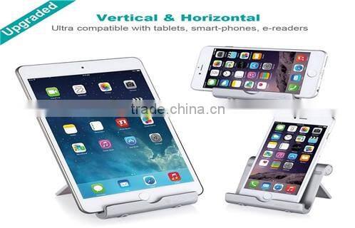 Portable aluminum phone holder for your smart phone/tablet/E-reader in bed or desk when you are watching video or reading.In this moving word, nearly everyone own his or her smart phone and tablet to watch videos. It's not easy to take your devices in hand all the time, this little stand will solve your problem, take it on this stand on the desk or bed and let your hands take a break, beautifully enjoy your movie.