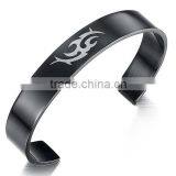 Wholesale Customized Black 316L Stainless Steel Open Cuff Tribal Bracelet for Men