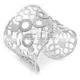 Manufacturer Supply Customized Wide Stainless Steel Cuff With Circle Hollow Cutout Design and Glitter for Party Bracelet