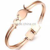 China Factory Supply Personalized Elegant Rose Gold Stainless Steel Cuff Open Bracelet Kiss Fish for Girlfriend