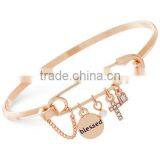 Latest Design Fashion Jewelry Personalized Rose Gold Plated Blessed Safety Pin Charm Bracelet