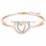 China Factory Supply Famous Rose Gold Crystal Pave Interlocking Double Heart Bracelet