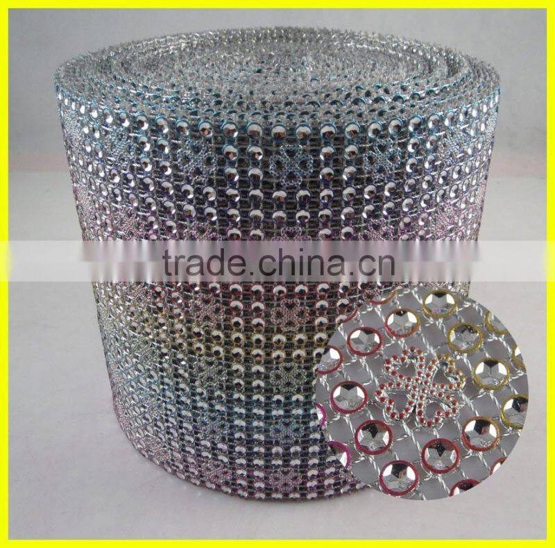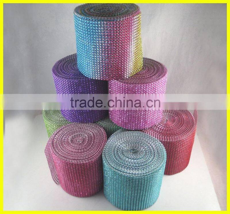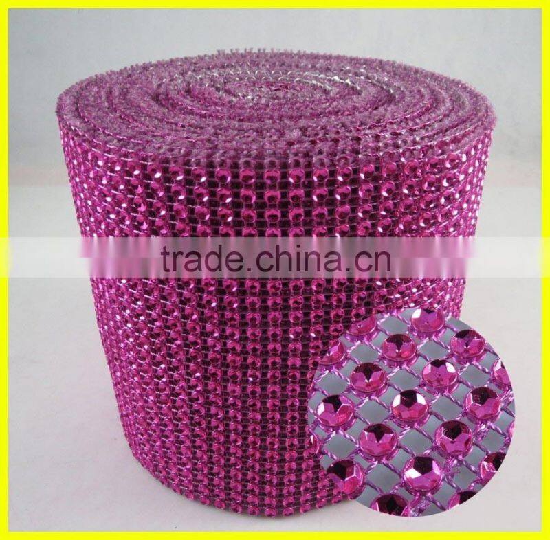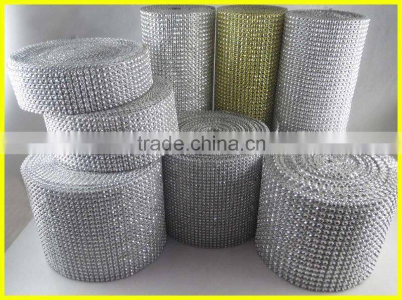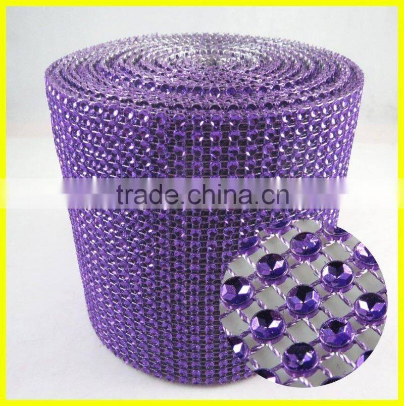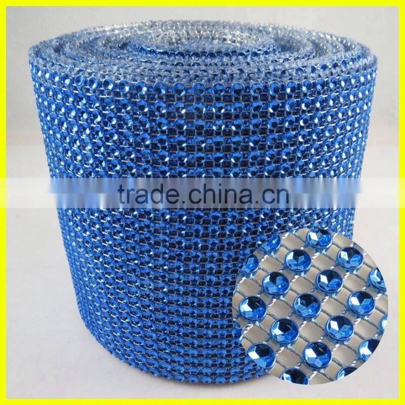 24 Rows Blue Plastic Rhinestone Mesh Trimming Roll