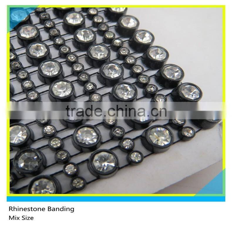 Plastic Crystal Banding Trim Sew on Ss10 3mm AB Crystal Black Banding 10 Yards
