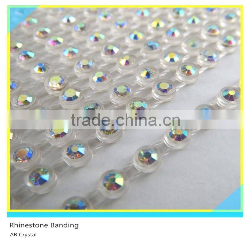 Plastic Rhinestone Banding Sew on Ss16 4mm AB Crystal White Banding 1x130 Pcs 10 Yards