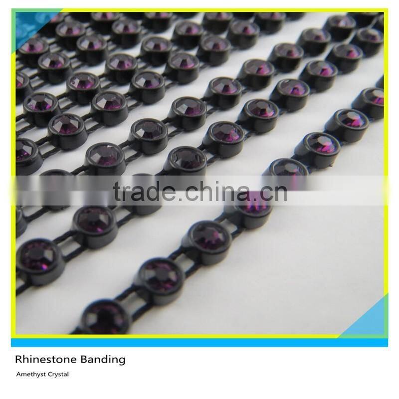 Single Plastic Crystal Banding Sew on SS6 2mm Amethyst Black Banding 1x200 Pcs 10 Yards