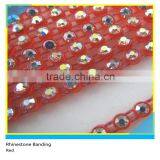 Plastic Crystal Banding Sew on Ss16 4mm AB Crystal Red Banding 1x130 Pcs 10 Yards