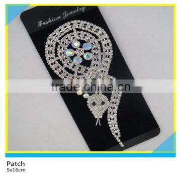 Sew on Glass Rhinestone Jewelry Applique Snake Design Rhinestone Patch 5x16cm