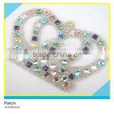 Hot Fix Crystal Rhinestone Applique Heart Shape Shiny Rhinestone Patch 11x21.5cm