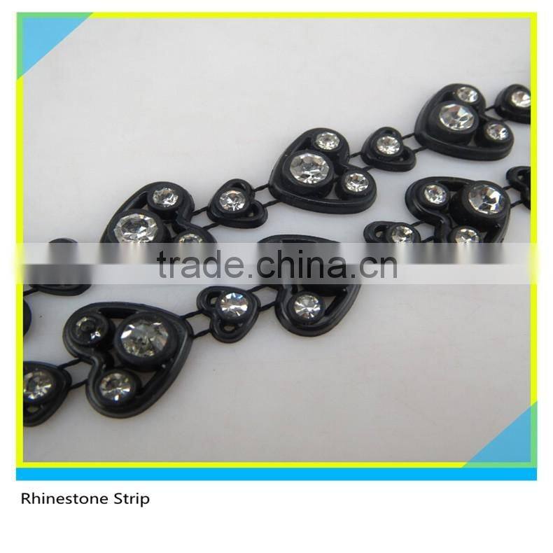 Plastic Strip Sew on Heart Design Black Plastic mix Crystal 10 Yards 1 Card