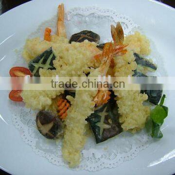 wrap powders were used for fry shrimp. It can be made up to different taste. It can give the excellent look and taste for the shrimp.