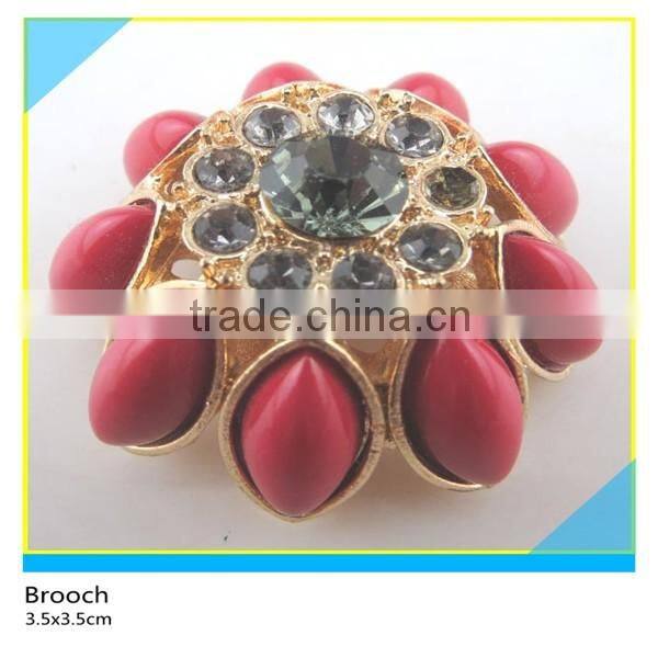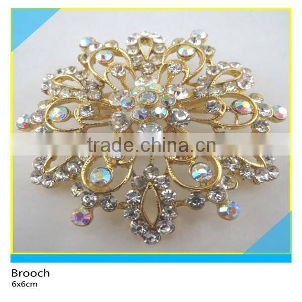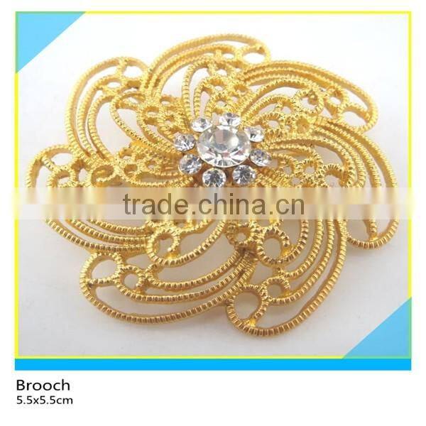 Home > Products > Zinc Alloy > Gold Metal Flower Design Brooch Glass Rhinestone Brooch 5.5x5.5cm
