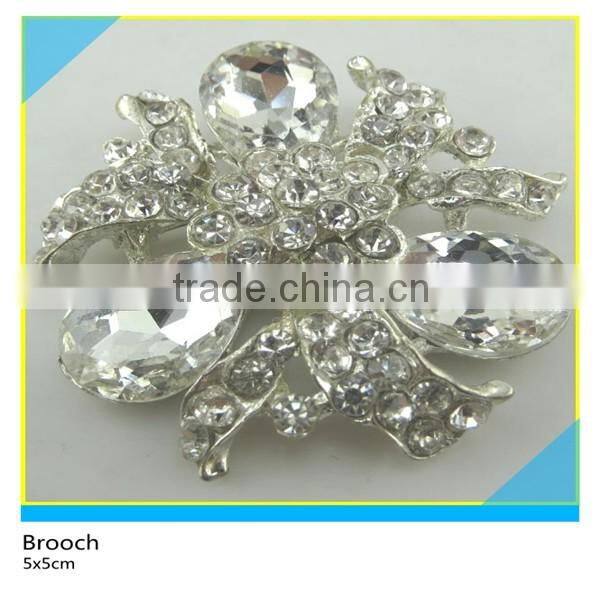 New Fashion Design Rhinestone Brooch Sliver Plated Clear Crystal Rhinestone Brooch 2.5x4.5cm