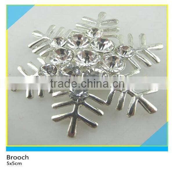 Sliver Plated Snowflake Rhinestone Brooch Clear Crystal Rhinestone Flower Brooch 5x5cm