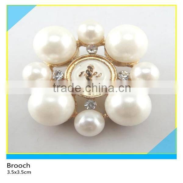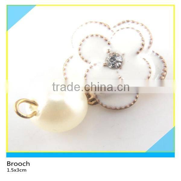 Gold Metal Base Flower Design Pearl Brooch Diamond Brooch 3.5x3.5cm