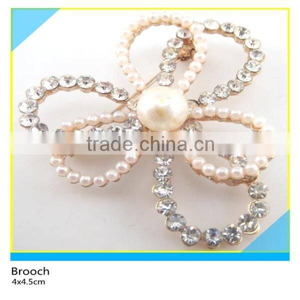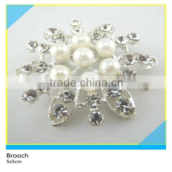 Rhinestone Mix Pearl Flower Design Brooch Crystal AB Rhinestone Setting Brooch 4.5x4.5cm