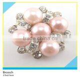 Pink Pearl Silver Plated Base Brooch Glass Crystal Setting Brooch 2.5X2.5cm