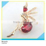 Crystal Brooch Red Rhinestone Setting Gold Metal Angle Design Brooch 3.5x7cm