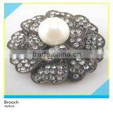 Rhinestone Brooch Grey Metal Flower Design Pearl Brooch 4x4cm