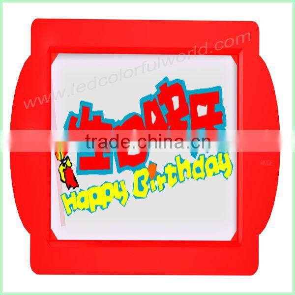 LED Kids Board with multi color changing are erasable and can be rewrite,with 36 different kinds of flashing modes changed via remote controller. 2014 Christmas Fluorescent Led Writing Board being flashing and brighting, you can write down anything on the screen to show your ideas.