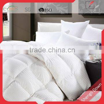 All kinds of fabric is available for down quilt, with quilting stitching through the quilt or wall baffle technology to ensures that the filling is stable in the duck bedding down quilt, and finally well completed with a good finishing for the edge.