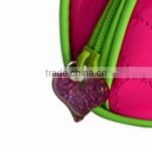 Fluorescence Green zipper and Purple heart shape plastic puller.