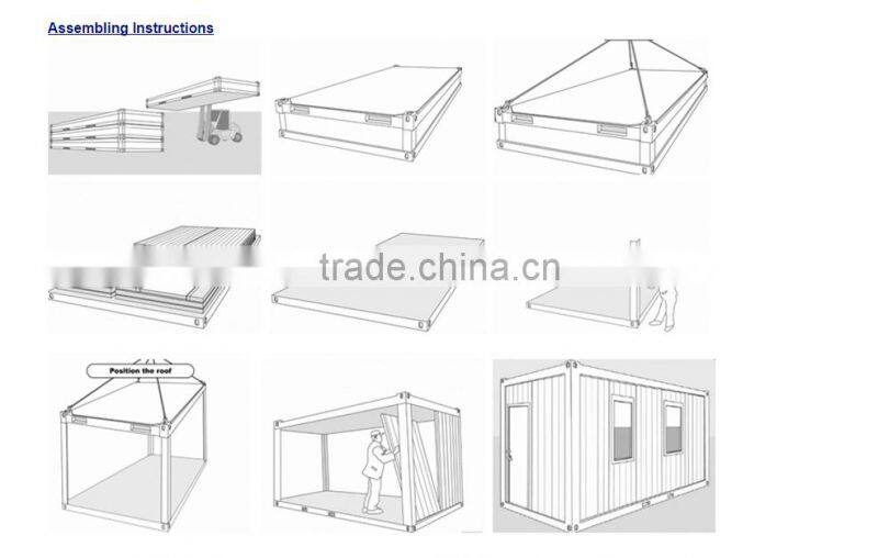 - Relocation is convenient, mobile integrated container house, can be wholly moved by forklift and crane, can be transported by overall, packaging transport and bulk transport such 3 different ways.