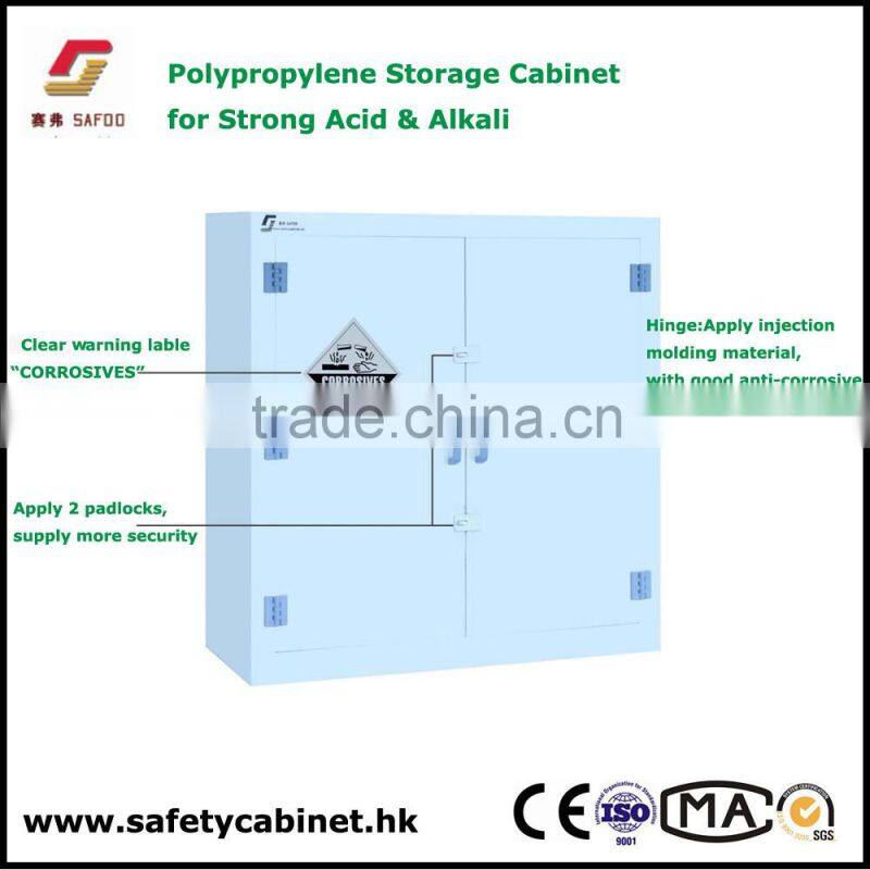 SAFOO series strong acid and alkali storage cabinet is designed for storage and anti-leakage of strong corrosive chemical products.It is used to store strong corrosive chemical products (for example:sulfuric acid,muriatic acid,KOH and NaOH,etc chemical material)