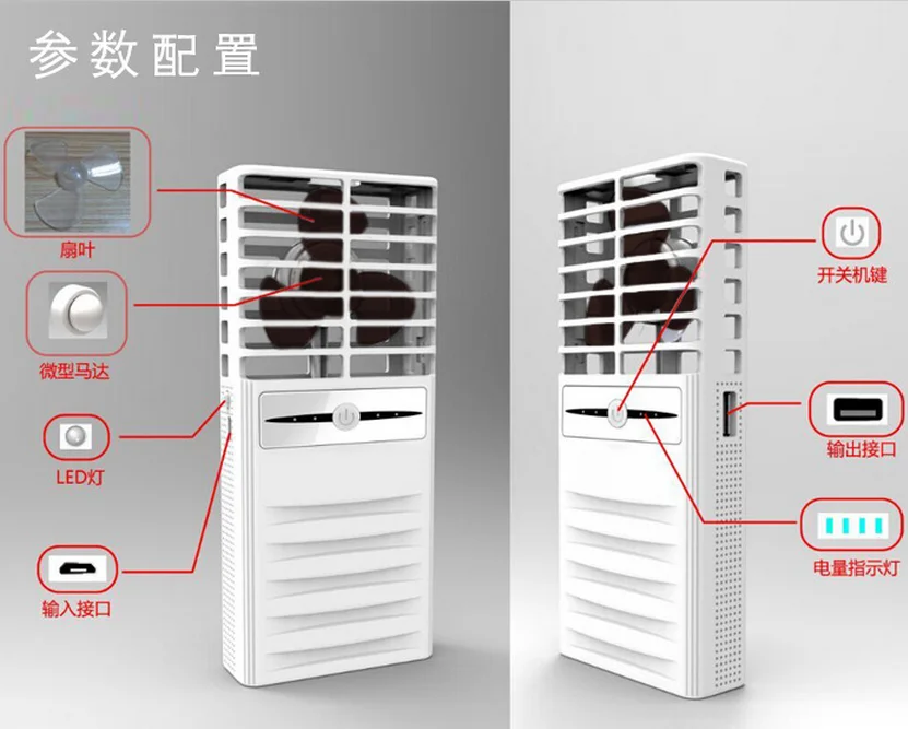2016 New Design Fan Power Bank 6600mAh Mini Usb Fan Power Bank