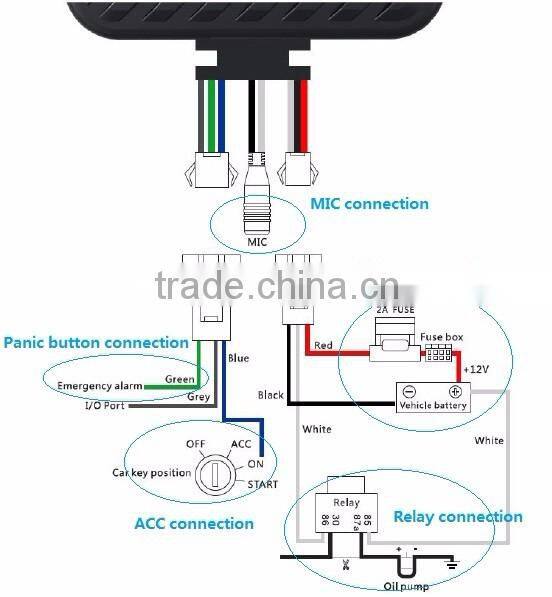 GPS real time tracking Base station positioning Waterproof IP65 Over speed alarm Power cut off alarm SOS alarm Low power alarm Mileage statistic Geo fence ACC detection Remotely cut off fuel and power MIC voice monitoring Backup battery Built in G-sensor | GPS module GSM module Working voltage Working current