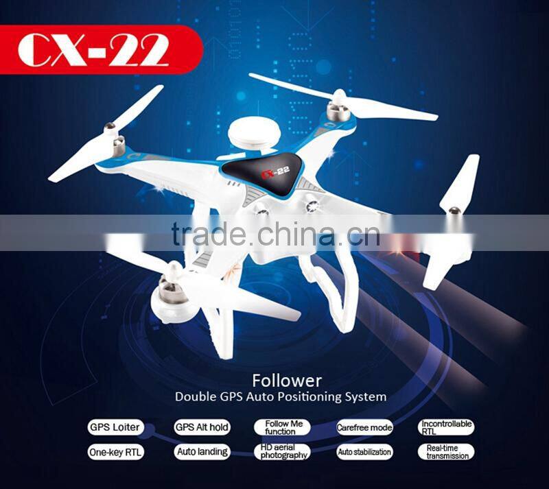 NEW HOT in 2015! CX-22 Follow Me 4CH 6-Axis Dual GPS Quadcopter One-key RTL with HD camera and FPV Drone