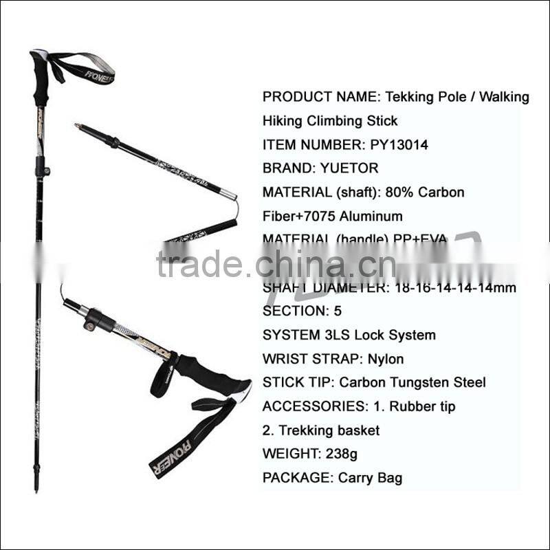 3LS Lock System 80% carbon fiber trekking pole climbing stick