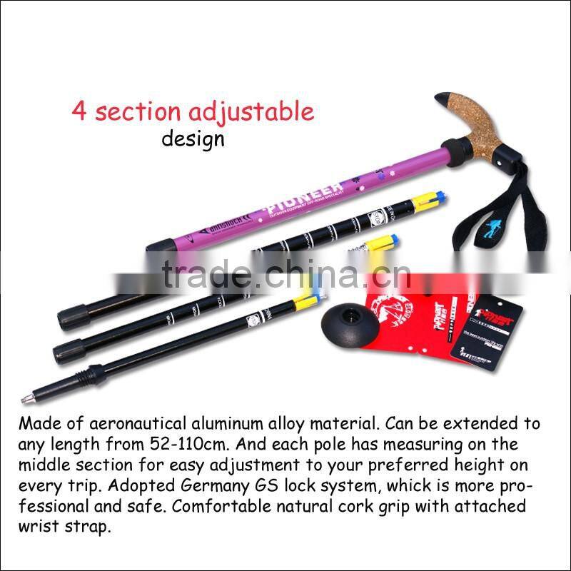 T handle four sections adjustable Internal lock with Antishock aluminum 7075 trekking pole