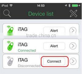 1. iTag will connect the smart phone automatically when power on, if it shows “disconnected” on the App, please click the “Connect” button to connect it again.